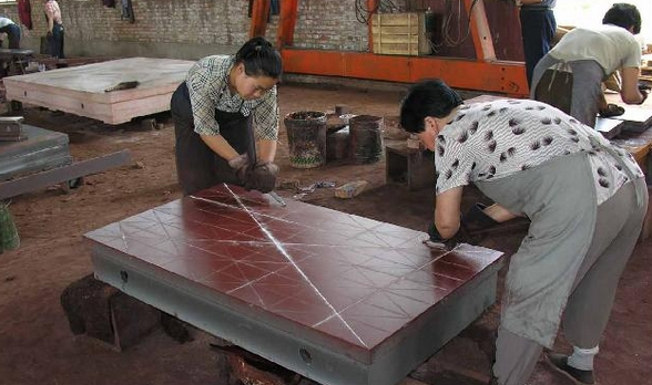 | 鑄鐵平臺(tái)需要機(jī)床加工配合人工刮研才可以達(dá)到高精度 |